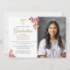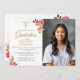 A delicate watercolor floral arrangement of pink and gold roses with soft gold sprinkles (this is a digital effect, not real gold foil), as well as a gold caduceus are the elegant decorations for this simple, classy, modern nursing school graduation invitation with photo, that you can fully personalize and modify with the name of the school, the degree etc. The large template area allows for plenty of space to include the graduation ceremony location and a celebration afterwards, or customize it simply with the graduation party details.