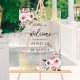 Elegant islamic wedding welcome sign featuring beautiful pastel flowers and intricate gold lace.