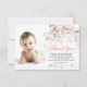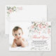 Pink Roses Greenery Baptism Photo Flat Thank You Card