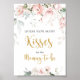 Guess How Many Kisses for the Mommy-to-be Baby Shower Game Sign - This design features an illustration of pale pink roses and leafy green stems in watercolor style. This sign is perfect for adding some fun and excitement to your Baby Shower.