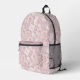 Personalized bridesmaid backpack bags for the fun and elegant wedding featuring pink roses on lace and personalized with the name of each bridesmaid. Great gift idea for the bride squad in your wedding.