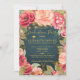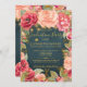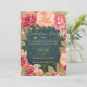 Luxury elegant vintage romantic style graduation party invitation template featuring blush pink and peach gold peony roses and blooms borders and golden rustic strings or twinkle lights on a midnight blue chalkboard background. ----- The invite is suitable for spring or summer night, rustic or garden vintage outdoor graduation party or other anniversary celebrations.