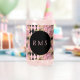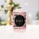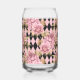 Pretty in pink! Trendy can glass with large pink roses with gold embellishment on bold black harlequin diamond background. Customize with monogram in centre black circle. Perfect for bridesmaids or other wedding party!