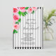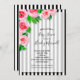 Chic floral baby shower invitations feature pink roses a top border of pink roses and greenery on a black and white stripes background. Personalize with your baby shower details in a modern hand lettered script and traditional sans serif lettering. Invitations reverse to black and white stripes and a small pink rose at the bottom.