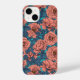 Pink roses with blue leaves on blue iPhone case