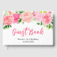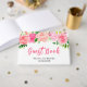 This fun and whimsical birthday party guest book features watercolor pink roses and foliage on a gold geometric frame. The text combines handwritten script and serif fonts for a stylish and modern look. This is perfect for a spring or summer rustic birthday party.
