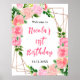This fun and whimsical birthday welcome sign features watercolor pink roses and foliage on a gold geometric frame. The text combines handwritten script and serif fonts for a stylish and modern look. This is perfect for a spring or summer rustic birthday.