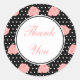 Pretty pink roses decorate these black and white polka dot thank you stickers. Use these elegant stickers for a wedding, bridal shower, party favours, wedding favours, business, etc...The design is from original art.