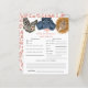 Cute safari theme girl's baby shower baby predictions and advice card featuring illustrations of animals (giraffe, rhino, and leopard) with flower, crown, and party hat. The texts are editable. Perfect game to play during the shower and will definitely be a great keepsake! The card asks guests to predict what the baby would look like.