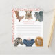 Cute safari theme girl's birthday party message card for a time capsule featuring illustration of a lion, elephant, snow leopard, rhino, zebra, and giraffe with flower, crowns, and party hats. The background is a pink leopard pattern. Perfect for a girl's 1st birthday party.