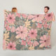 Pink Sage Green Flowers Leave Watercolor Pattern Fleece Blanket
