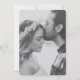 This pretty floral wedding save the date flat card template features your names accented by Japanese cherry blossoms. The names and the SAVE THE DATE text are in a very soft red and the other details are an elegant tone that has elements of grey and orange. We have set the background as transparent, so that the paper you choose will serve as the base. With the abundance of empty space that the design affords(such empty space in a design is called 'ma' in Japanese) and this transparent base, the texture of the paper has a chance to shine as well, and for that reason we chose a richly textured paper called 'laid' as the default selection. Please have a look with the zoom to get an idea of what such a paper can add to designs like this. Of course you can change the paper type and you can also change the background from transparent to a colour if you prefer. You can also edit the style, colour and size of the text to suit your taste. We've chosen a lively, modern script for the names in our example, but there's a wide selection of other fonts to choose from. The back of the card is devoted to your favourite photo. Our sample photo appears as black and white, but we started with a colour photo and activated the black and white filter to get this effect. In addition, we added a 30% grey colour filter in order to soften the contrast between black and white. Try this with your own colour photo, and if you prefer to keep the colour, you can deactivate the filter. In any case, just please remember to edit the back of this card and remove our sample photo! We have also chosen rounded corners with the same softening look in mind, but you can change this to sharp corners if you'd like. Create your own custom look with the intuitive design tools and your inspiration! And please check our Sakura Japanese Cherry Blossoms Wedding Collection for complementary items, including this design without a photo on the back.