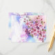 Artistically drawn, branch of pink, cherry blossoms on picturesque, textured background, painted over with white, pink and blue paint. Pink Sakura