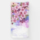 Artistically drawn, branch of pink, cherry blossoms on picturesque, textured background, painted over with white, pink and blue paint. Pink Sakura