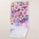 Artistically drawn, branch of pink, cherry blossoms on picturesque, textured background, painted over with white, pink and blue paint. Pink Sakura