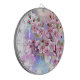 Artistically drawn, branch of pink, cherry blossoms on picturesque, textured background, painted over with white, pink and blue paint. Pink Sakura