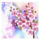 Artistically drawn, branch of pink, cherry blossoms on picturesque, textured background, painted over with white, pink and blue paint. Pink Sakura