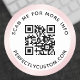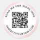 Elegant, round QR code label with circular text and a printed light pink satin gradient border.