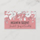 Pink business cards for your budding scented soap and candle business with white roses and charcoal greenery.
