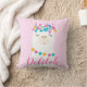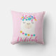 This sweet nursery pillow features an adorable illustrated llama with colourful tassels and pom-pom details on a soft pink background. The child's personalized name is displayed in a beautiful flowing script, making it a standout monogram keepsake. A charming accent for a llama-themed nursery, bedroom, or playroom. Customize the name for a truly special gift.
