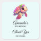 Birthday thank you stickers with a cute illustration of a sea turtle. Pink body and shell with a floral topping. Looks happy and adorable.
