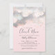 She's On Cloud Nine Baby Shower Invitation. Celebrate the mom to be with this dreamy and whimsical design, perfect for a celestial and pastel themed baby shower. The top features soft pink and blue watercolor clouds accented by delicate gold stars, creating an ethereal and magical feel.