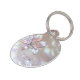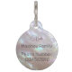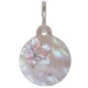 Holographi metallic flower on a mother of pearl background. Customize it with your pet's name, your name, address and phone number.
