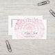 A pink metallic intricate floral mandala on a white background. The bottom portion features a white text field with an elegant classic handwritten script. At the backside is a scannable qr code for your website. Perfect for salon, hair-and makeup, beauty, yoga teacher, boutique or any female entrepreneur.