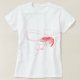 Pink shrimp t-shirt with black custom text. A single shrimp with long, swirling antennae is the design for tees, sweatshirts, or any apparel. A line of black printed text beneath can be used for any wording, in as many lines as are needed - still fitting the design. Advertise a business, personalize with a name, or remove the text to buy blank.