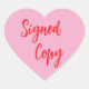 Signed copy heart stickers with the text "signed copy" perfect for a book launch, a book signing or any author and writer's event. Bold, minimalist and modern design with a script font.