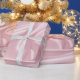 Sleek pink silk print gift wrap is the perfect addition to a glam Christmas tree.