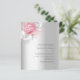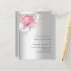 A faux silver looking background. Decorated with a pink and white roses. Personalize and add your names and wedding details.