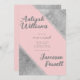 Elegant gray bold script calligraphy with trendy stylish blush pink and silver glitter geometric wedding invitations.