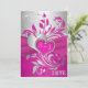 Pink, Silver Scrolls, Hearts Wedding Invitation
