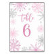 Pink Silver Snowflakes baby shower Six Table Number