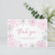 Pink silver snowflakes baby shower thank you card