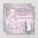 Pink Silver Sparkle Dress & Tiara Quinceanera Invitation