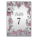 Pink Silver White Floral Table Number
