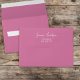 Enhance your correspondence with our return address, a simple pink envelope featuring a minimalist solid-colour design. This 5x7 A7 size envelope is adorned with a custom back flap for personalization and classic bold typography that stands out. The minimal modern style blends seamlessly with fun, whimsical, bright elements, accented by calligraphy script and handwritten lettering. Perfect for any occasion, its minimal design exudes timeless elegance with a playful touch.