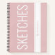 Pink personalized sketchbook notebook for art and drawing, featuring a huge large print title of "Sketches by... and your name" printed directly on the cover in a modern bold letters.