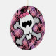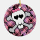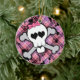 Pink Skull and Crossbones with Hearts and Bow Ceramic Ornament