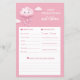 Welcome to the Pink Sky White Cloud 9 Predictions and Advice game designed for a girl baby shower party! This whimsical and enchanting game is the perfect addition to celebrate the upcoming arrival of a precious baby girl. The pink sky and white cloud theme adds a touch of sweetness and charm to the event, creating a serene atmosphere for guests to enjoy. This game not only provides entertainment but also allows guests to share their predictions and advice with the parents-to-be, making it a heartwarming and interactive experience. With its lovely design and thoughtful concept, the Pink Sky White Cloud 9 Predictions and Advice game is sure to be a hit at the baby shower, leaving guests feeling positively delighted.