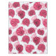 Pink snails tablecloth with a pattern created from an ink drawing of abstract snail shells with decorative white dots in from of leaves.