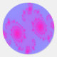 This brilliantly coloured fractal set of round stickers makes me think of a pink sneeze. It has pink splodges on a blue background that look like a pink sneeze on a blue tissue. It could also be interpreted as disco lights, spots or anything else that comes to mind while looking at it. The wonder of this design is that it’s up to the observer to decide what they see in it.