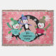 Pink Snowflakes and Dots Penguins Holiday Throw Blanket