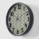This wall clock has a mid-century modern design of pink ovals connected by pink lines with off-white circles all on a field of light green. Want different colours? Message me.