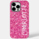 Fun party vibe, pink sparkling glitter iPhone 14 pro max - text is customizable and design is transferable-