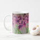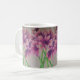 This mug is printed with a hand-drawn pink spider lily design.