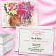 This "55 and Fabulous" birthday party invitation design features a pink splash with a watercolor bicycle and a basket on the handlebars leaning against a barrel on the cover. All the party details are on the inside. Fill in the template text fields under personalize with your information.