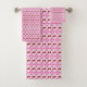 This awesome bath towel set includes a bath towel, a hand towel and a wash cloth. Each towel can also be purchased separately on the product page. The design features a pattern of pretty pink cherry blossom flowers, also called Sakura an Japan. They are a symbol of Spring and are ideal for a Spring celebration. They are mixed with pairs of ripe shiny red cherries.